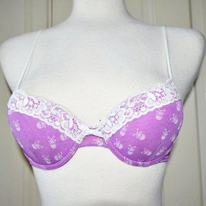 BRA SKULLS PATTERN & LACE TRIM LAVENDER BODY WHITE SKULLS & LACE TRIM FIXED STRA