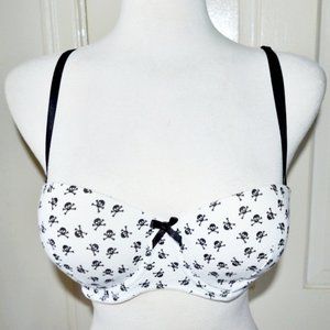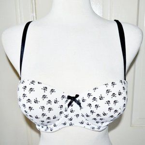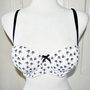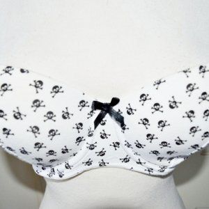 BRA SKULLS PATTERN WHITE BODY WITH BLACK SKULLS REMOVABLE STRAPS 36C