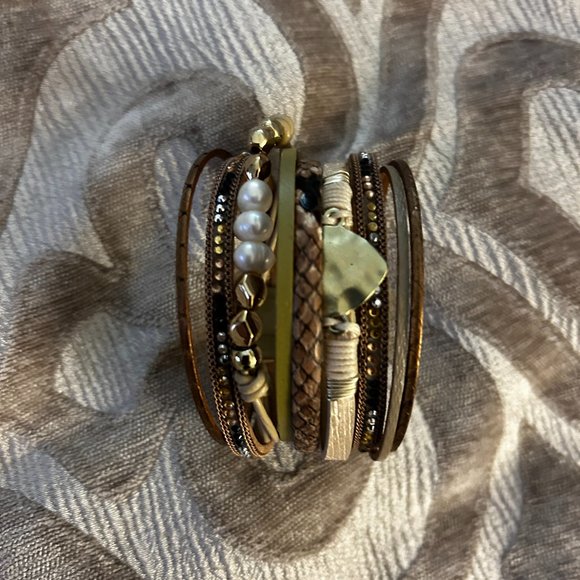 Super cute bohemian style bracelet with multiple strands. Also, has a