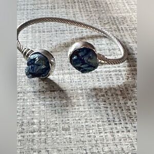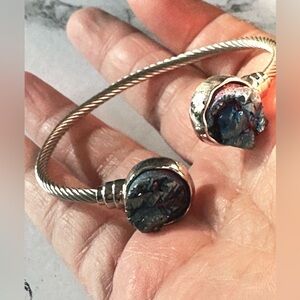 BRACELET CUFF SILVER TONE 6.75 DRUZY BLUE TWISTED ROPE 4139 B