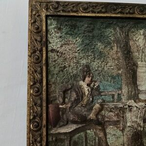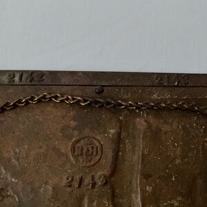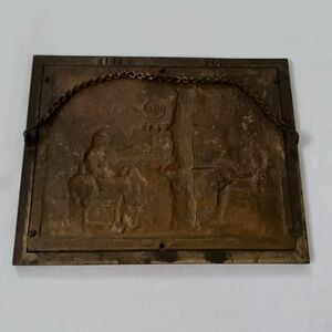 Antique Bradley & Hubbard solid cast iron painted relief plaque of garden scene with attached hanging chain. From the late 1880-1890s. Stamped and hallmarked. Original paint, has not been cleaned or touched up. Photos are a little brighter than actual image. Please realize that colors may appear differently on your monitor. These are becoming harder and harder to find, and have been listed on other sites for $375 to over $500. Measurements and hallmarks in photos.