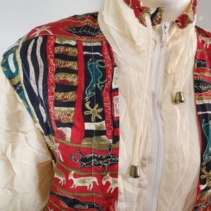BRAEFAIR Cream Jacket Vintage XS Silk Aztec Design Soft Lightweight Artsy Animal