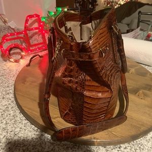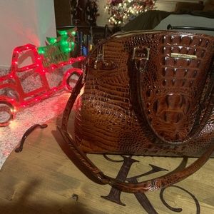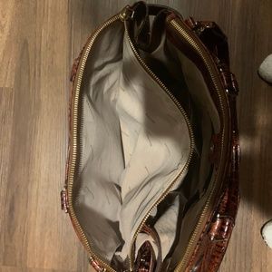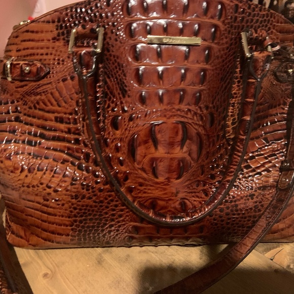 LITERALLY DID NOT USE MAYBE 10 TIMES THE BIG OUTSIDE POCKET NEVER USED.... A PEN LEAKED IN THE MIDDLE A LITTLE NOTHING BIG AT ALL..VERY VERY GOOD CONDITION ! TAKING OVER 250 OFF OF A NEARLY BRAND NEW BRAHMIN
