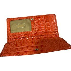 The BRAHMIN Ady Slim Wallet Clutch in Heartbreaker Heat Melbourne is a stylish and practical accessory for women. Made from genuine leather, this wallet features credit card slots and a logo accent. With its sleek design and vibrant red/orange color, it is the perfect blend of fashion and functionality. At 3.75 inches in height, 7.5 inches in length, and 1 inch in width, this wallet is compact enough to carry in your purse or bag, making it convenient for on-the-go use.