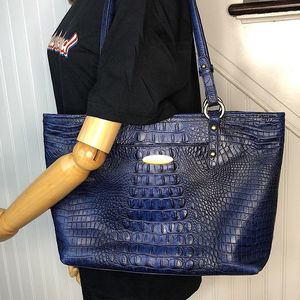 BRAHMIN Blue Crocodile Leather Top Zipper Closure Shoulder Bag