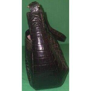 BRAHMIN CAYSON BLACK MELBOURNE LEATHER SMALL HOBO SHOULDER BAG Croc Embossed