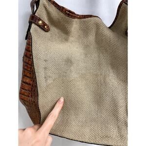 BRAHMIN Croc Embossed Leather & Canvas Large Shoulder Bag Purse Brown and Tan