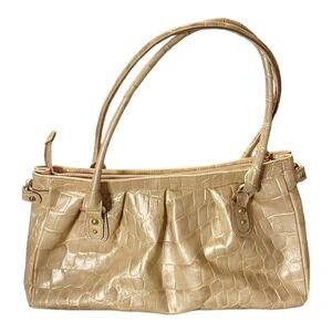 BRAHMIN Croc Embossed Leather Satchel Dual Handle Zipper Closure Cream Handbag