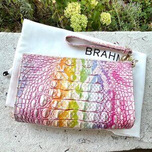 BRAHMIN Daisy Optimism Melbourne Croc Pastels Wristlet Clutch Dust Bag Rare