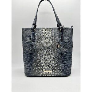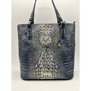 BRAHMIN Ezra croc embossed leather large tote + Dust bag - Twighlight blue