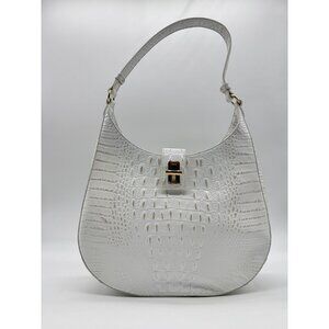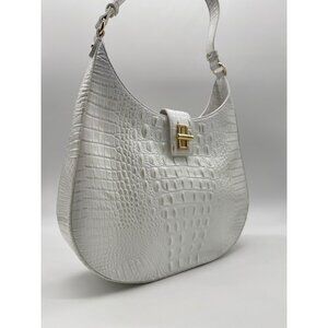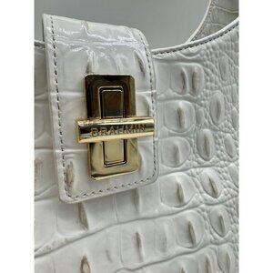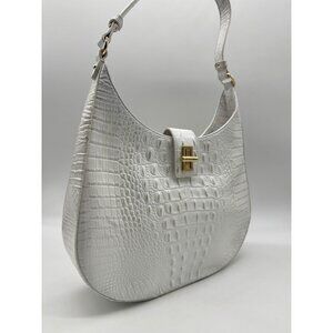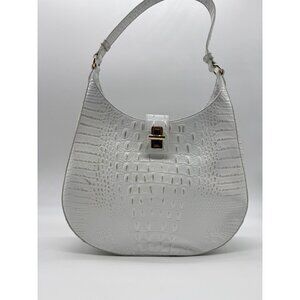 BRAHMIN Fallon Melbourne croc embossed leather shoulder bag -Sea Salt White-USED