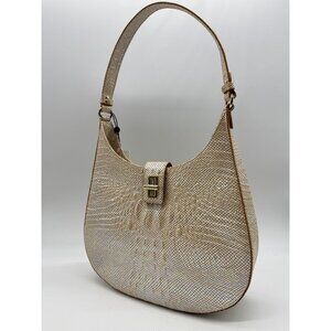 BRAHMIN Fallon croc embossed leather shoulder bag + Dust bag -Tiramisu/Beige