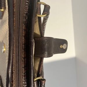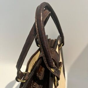 BRAHMIN Harbour Collection Doctor Bag Satchel Brown Burlap/Woven Leather
