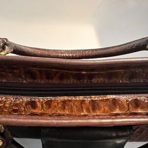 . Interior is lined in Brahmin's classic BEIGE CHAMOIS