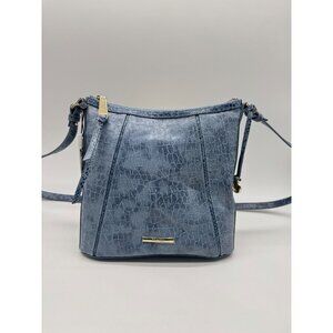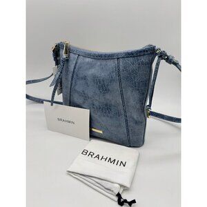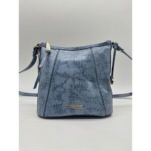 BRAHMIN Katie Zostera croc embossed leather small crossbody + Dust bag Blue
