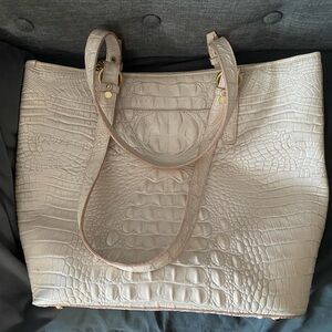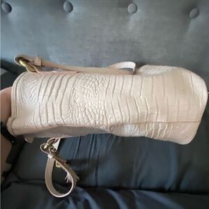 Large Leather 2 handles, top zip with 2 pockets tote bag/purse. Cream color. New and never used.
