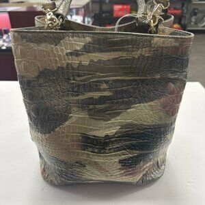 HANDBAG: BRAHMIN MODEL MINI AMELIA, LEATHER, BUCKET, GRAY, 0