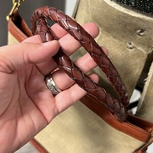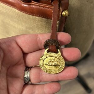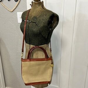 Adorable vintage Brahmin bag -cream canvas and leather with braided short straps and longer detachable strap. Very good vintage condition. Small stains inside bag & a few on outside as seen in pics. Please check out all pics and comment below with any questions