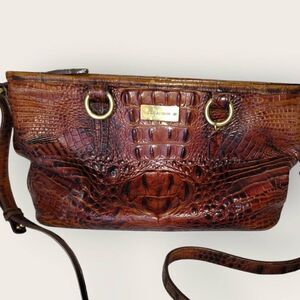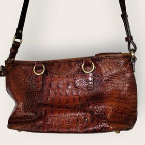 BRAHMIN Pecan Brown Leather Crocodile Print Shoulder Bag Purse Vtg Classicore Y2
