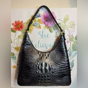 BRAHMIN Tabitha Black Crocodile-Embossed Hobo Bag with Glossy Finish