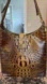 BRAHMIN CROC EMBOSSED 2 WAY BAG BROWN WITH GOLDEN HARDWARE &