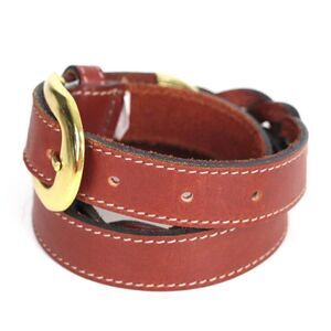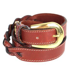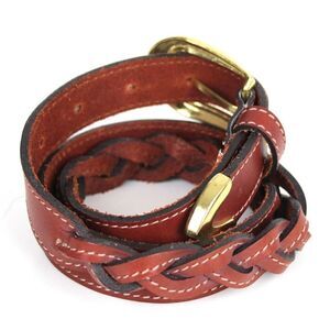 BRAIDED BROWN GENUINE LEATHER 1"Wd STITCHED DRESS CASUAL WOMEN'S BELT Sz M (E32