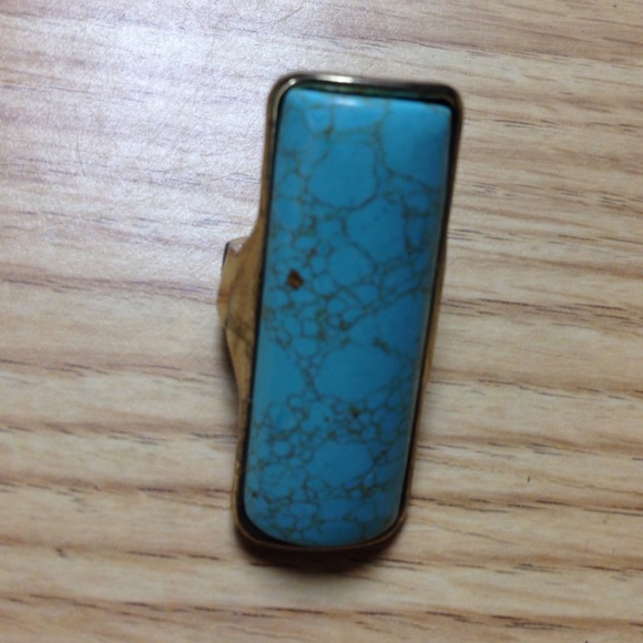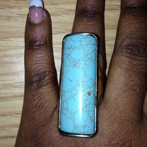 Turquoise and silver stretchy back ring