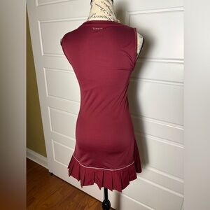 Adidas NWT dress, sleeveless athletic dress, burgundy Adidas dress, moisture-wicking sports dress, Adidas tennis dress, sporty casual dress, activewear for women, lightweight Adidas dress, sleeveless workout dress, Adidas logo dress, performance athletic wear.