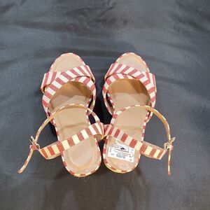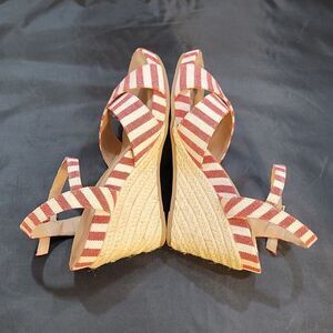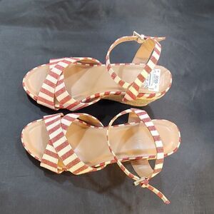 BRAND NEW AEROSOLES WOMEN'S PASTEL WEDGE SANDAL SIZE 9.5 COLOR RED&TAN Thermoplastic Rubber Outer material Synthetic PU Closure type Buckle Water resistance level Not Water Resistant About this item Features a wedge espadrille heel Crisscross straps Adjustable ankle strap Ortholite insole Diamond flex outsole Description Introducing Pastel: the perfect wedge sandals to add a pop of color and pizzazz to your wardrobe! These comfortable wedges are sure to keep your feet relaxed and stylish, while providing a boost of extra height. This women's Wedge has a wedge heel and is perfect for everyday. Rich with shoe comfort, it possesses a diamond flex outsole, a ortholite insole and many other incredible shoe comfort features heel height measurements approximately 4"inched THIS ITEMS IS BRAND NEW WITH TAG NO BOX CHECK THE PICTURE