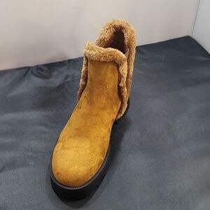 BRAND NEW AEROSOLES WOMEN'S SWALLOW CHELSEA FAUX SUEDE BOOT SIZE 91/2 COLOR TAN Simple yet sophisticated, the Swallow ankle boot is crafted in soft suede. Substantial lug soles add an on-trend twist. Pairs perfectly with a variety of styles—from silk midi skirts to tailored trousers. 1 1/2" Heel. All Synthetic Materials.Simple yet sophisticated, the Swallow ankle boot is crafted in soft suede. Substantial lug soles add an on-trend twist. Pairs perfectly with a variety of styles—from silk midi skirts to tailored trousers. 1 1/2" Heel. All Synthetic Materials.Sole Material Rubber Outer Material Faux Suede Closure Type Slip-On round toe Slip-on lug sole THIS ITEMS IS BRAND NEW WITH TAG CHECK THE PICTURES