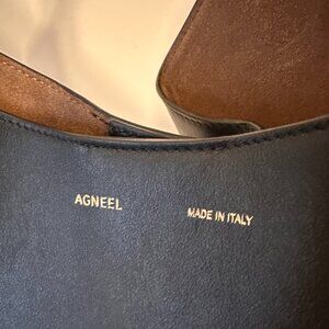Brand New AGNEEL Hobo Bag in Black Calfskin with Brown Suede Interior, Protective Packaging still intact, Bag included.