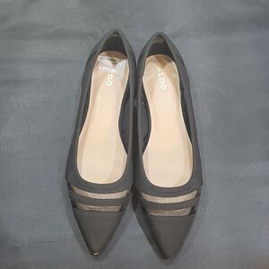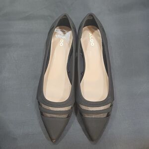 BRAND NEW ALDO POINTED TOE SLIP-ON WOMEN"S LEATHER FLAT 6M COLOR BLACK MADE WITH ALL MAN MADE MATERIALS LINING UPPER TEXTILE BALANCE MANMADE MATERIALS HEEL HEIGHT MEASUREMENTS APPROX 0.25"INCHES THIS ITEMS BRAND NEW WITH TAG NO BOX CHECK THE PICTURES