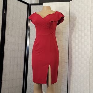 BRAND NEW ALEXA B NITES V-NECKLINE BODYCON SHEATH DRESS SIZE 4P COLOR RED Comes with back concealed zip and fully lined. Slightly-stretchable & small split in the bottom frond made with shell 94%polyester 6%spandex lining 100%Polyester Have any dinner plans? This solid midi dress is crafted in a flattering body hugging silhouette with wrap details on the top. Show off those collarbones! THIS ITEMS BRAND NEW WITH TAG CHECK THE PICTURES ( FYI, THE FIRST PICTURES IS JUST A MODEL TO SHOW HOW THE DRESS LOOK ON CHECK THE PICTURES)