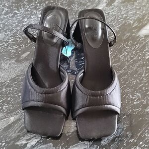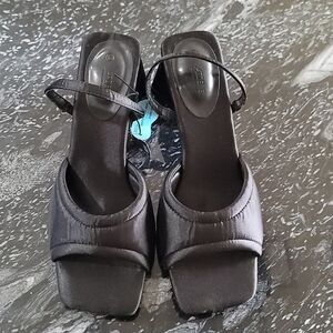 BRAND NEW ARDENE COMFORT FOAM BLOCK HEEL SANDAL SIZE 9 COLOR BLACK featuring elastic band Solid block Heel Upper Material Satin one strap closure square toe Add suave to your everyday style by adding these chic pair of heels that will grab attention in your way. Heels are sophisticated range that you can style with your formals as well as outwears to uplift your look effortlessly. Subcategory Sandals Occasion Casual