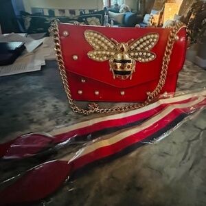 BRAND NEW! Adorable Red Bee Bag w/Red, White, Blue Long Handle Strap! Never Worn