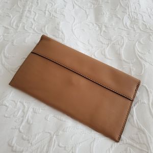 Cute tan Guess flat clutch/wristlet with removable gold chain handle