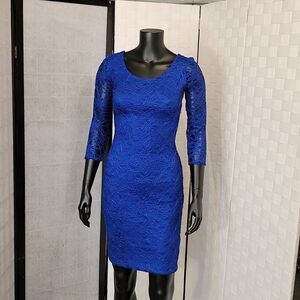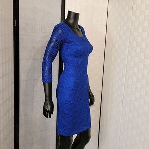 BRAND NEW BAILEY GIRL 3/4 SLEEVELESS SHEATH FLORAL LACE DRESS SIZE SMALL COLOR ROYAL BLUE ROUND NECKLINE INVIBLE SIDE ZIPPER CLOSURE ABOVE THE KNEE LENGTH MADE WITH SELF 95%NYLON 5%SPANDEX LINING 100%POLYESTER THIS ITEMS IS BRAND NEW WITHOUT TAG CHECK THE PICTURES