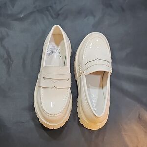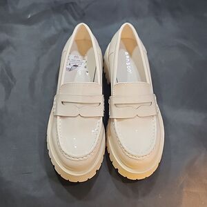 BRAND NEW BAMBOO HUTCH THICK SOLED PLATFORM LOAFERS SIZE 10/40 COLOR CREAM take your time and make your outfit cute and stylish with heel height approximately 1.5"platform slip on entry penny loafer products detailing platform sole lighty padded insole penny loafer flats These trendy loafers are so easy to wear and oh so comfortable! They're classic loafers with chunky soles, a decorative cut-out overlay on the top of the shoe, and a comfort base. These shoes are lightweight, patent leather, and slip on and off with ease. They're so cute for summer and can be transitioned from season to season effortlessly!THIS ITEMS BRAND NEW WITH TAG NO BOX CHECK THE PICTURES