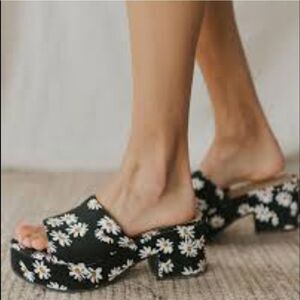BRAND NEW BAMBOO NICHE-16 DAISY'S FLORAL EMBROIDERED DESIGN PLATFORM SANDAL SIZE 10/40 COLOR BLACK &WHITE AND YELLOW AND BROWN When the talk is about style and comfort, the bamboo is going to win all the bouts!Textile upper. Synthetic lining and insole.peep-toe design. Chunky all man-made materials platform and block heel.Allover floral print. Man-made outsole Imported.Heel Height 3"inched in Weight 12 oz THIS ITEMS IS BRAND NEW WITH TAG NO BOX CHECK THE PICTURES