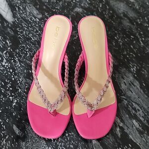 BRAND NEW BEBE AISLINN WOMEN'S RHINESTONE SLIP ON HEEL SANDAL SIZE 71/2 COLOR PINK WITH RHINESTONE EMBELLISHMENTS this is a Bebe collection thong toe Closure sandal Get ready to dazzle in this easy-on rhinestone heel height measurements approximately 4"inched Slip-on style Synthetic upper and sole Man Made Fabric type Man Made materials THIS ITEMS IS BRAND NEW WITH TAG NO BOX CHECK THE PICTURES
