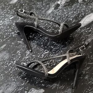 BRAND NEW BEBE STRAPPY HIGH HEEL STILETTOS RHINESTONES STRAP SANDAL SIZE 6.5 COLOR BLACK Rubber Outer material Fabric Closure type Buckle About this item sandal from Bebe Fabric upper Adjustable ankle strap with buckle Lightly cushioned footbed this sandal from Bebe Fabric upper *Adjustable ankle strap with buckle *Lightly cushioned footbed heel height Open round toe slip on style measurements approximately 4-inch THIS ITEMS IS BRAND NEW WITH TAG AND BOX CHECK THE PICTURES