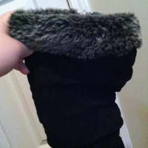 Brand new black wedge boots. Way to big so never worn. Fuzzy on the top, zips up. Size 11