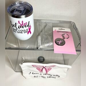 BRAND NEW - BREAST CANCER AWARENESS BUNDLE (TRAVEL MUG/KEYCHAIN/ZIPPER POUCH)