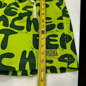 Brand new with tags. Green board shorts. Stretch waist with drawstring. Green logo pattern. See photos for measurements