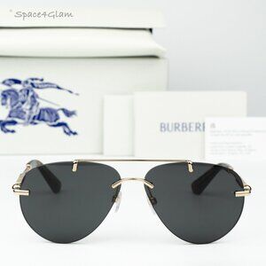 BRAND NEW Burberry BE3151 110987 Gold Dark Grey Pilot Unisex Sunglasses BE 3151