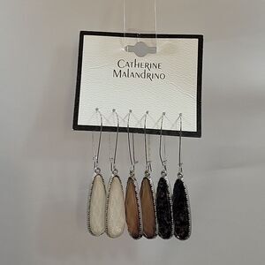 BRAND NEW CATHERINE MALANDRINO DANGLING DROP WOMEN"S EARRINGS THREE DIFFERENT COLOR PACK CREAM&SILVER, TAN&SILVER BLACK&BROWN &SILVER USE FOR ANY OCCASION THIS ITEMS IS BRAND NEW WITH TAG CHECK THE PICTURES