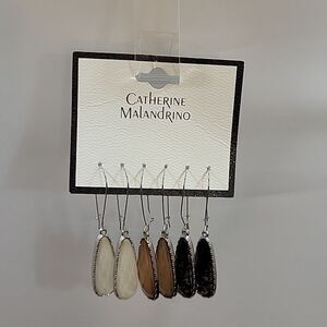 BRAND NEW CATHERINE MALANDRINO DANGLING DROP WOMEN"S EARRINGS THREE DIFFERENT COLOR PACK CREAM&SILVER, TAN&SILVER BLACK&BROWN &SILVER USE FOR ANY OCCASION THIS ITEMS IS BRAND NEW WITH TAG CHECK THE PICTURES