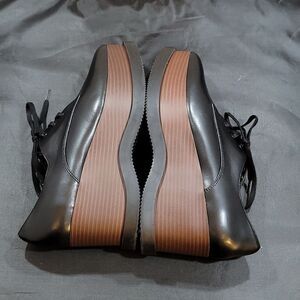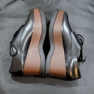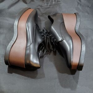 BRAND NEW CHARLES & KEITH PLATFORM WEDGE SHOES SIZE 38 COLOR BLACK &BROWN heels height measurements apron 2.5 inches on the highest part material leather with rubber sole Cushioned footbed Rubber outsoleLace up style Platformed sole Pointed toe Materia synthetic leather 100.00% THIS IS A BRAND NEW WITH TAG NO BOX CHECK THE PICTURES