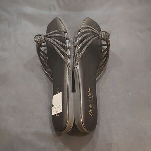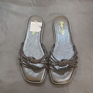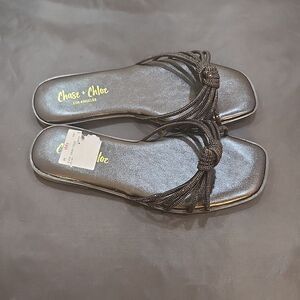BRAND NEW CHASE+CHLOE EVE-38 RHINESTONES WOMEN'S SLIDERS SIZE 61/2 COLOR BLACK Sparkle like the stars with our newly launched eve-38 Sliders! With a bedazzled black and silver knot and a metallic base, these sandals can be easily dressed up or down.The soles are crafted from vegan leather and feature cushioning for all-day comfort. made with textile upper balance man-made all man-made materials THIS ITEMS IS BRAND NEW WITH TAG NO BOX CHECK THE PICTURES (FYI THE FIRST PICTURES IS JUST A MODEL TO SHOW WHAT THE SHOE LOOK ON CHECK THE PICTURES)