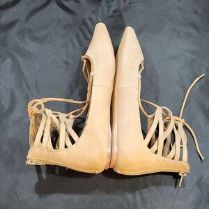 BRAND NEW COCONUT BY MATISSE POINTED TOE SUEDE LACE UP WOMEN'S BALLET FLAT SHOE SIZE 91/2M COLOR TAN BACK ZIPPER CLOSURE MADE WITH UPPER TEXTILE OUTSOLE MAN MADE MATERIALS CUSHIONED FOOTBED INSOLE HEEL HEIGHT MEASUREMENTS APPROX 1/3"INCHES THIS ITEMS IS BRAND NEW WITHOUT TAG OR BOX CHECK THE PICTURES (FYI THIS ITEMS WAS THE FLOOR MODEL CHECK THE PICTURES)